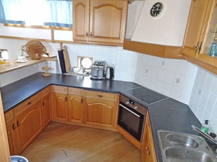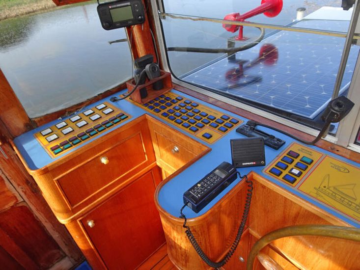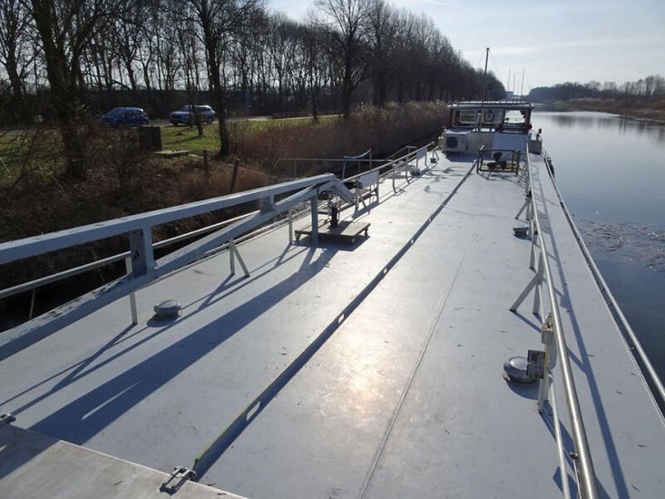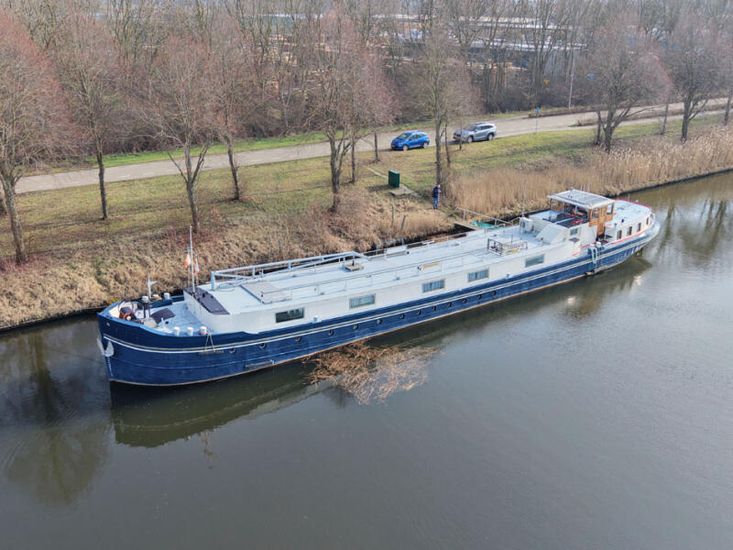 This former inland cargo vessel was fully converted into a cruising houseboat/Dutch Barge around 1999. The vessel is certified for EU zones 3 and 4, the Rhine, and also for zone 2 in the Netherlands. During the conversion, the original aft accommodation was largely preserved. Through the beautifully paneled wheelhouse, the aft accommodation is directly connected to the living area in the former cargo hold. The spacious bathroom is equipped with a shower cabin, bathtub and double washbasin. In addition, there is a separate toiletroom. A staircase in the corridor leads to the sun deck. The open-plan galley is generously laid out and adjoins the salon. Furthermore, there are three cabins. In the fore ship, there is a workshop that is well-accessible and equipped with a large deck hatch. The vessel offers exceptional living space and a very extensive cruising area, extending as far as the Black Sea. Closer to home, this houseboat also performs excellently, both underway and as a stationary residence, for example via the Ships Carousel or at a permanent berth. This is a comfortable, spacious and versatile houseboat with a wide-range of using possibilities.
