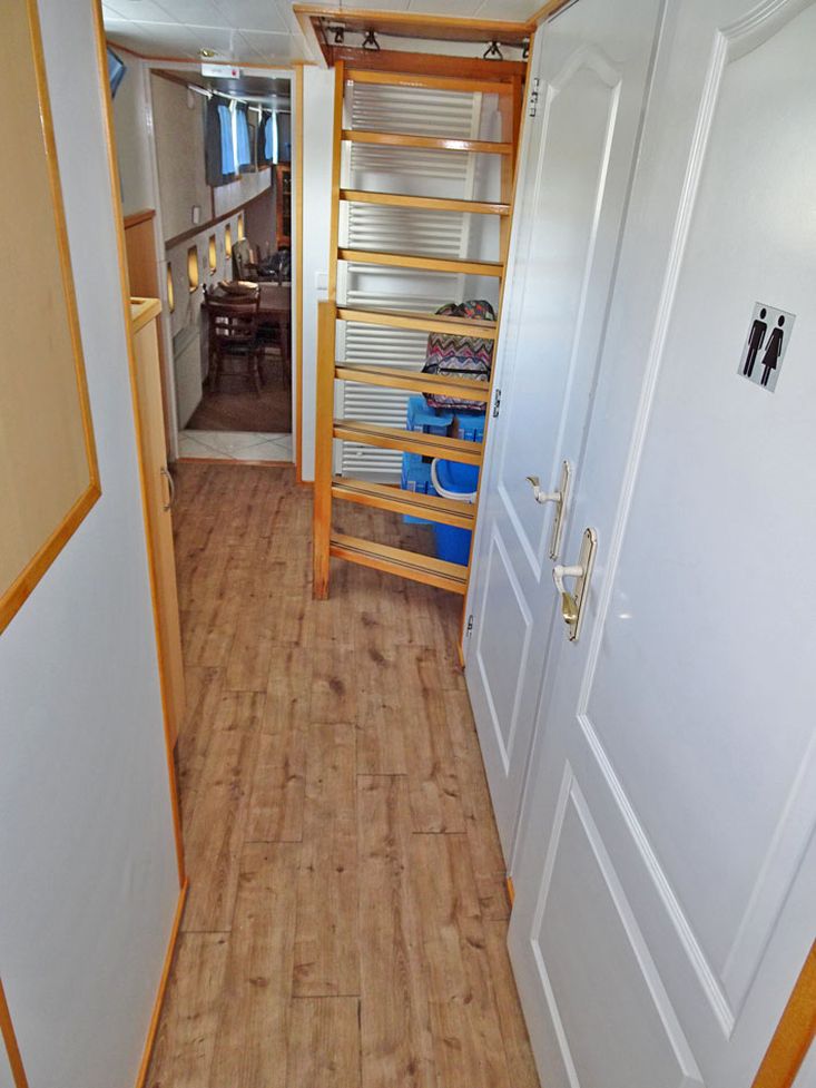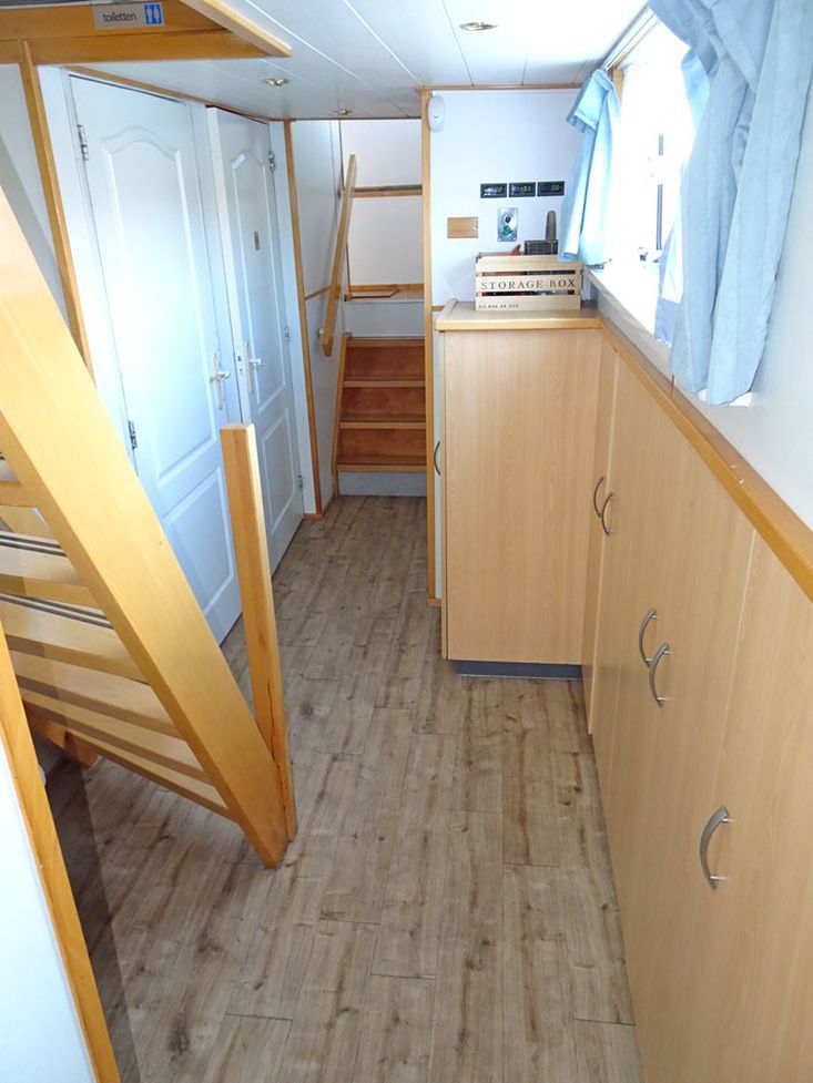 Dieses ehemalige Binnenfahrschiff wurde vollständig zu einem fahrenden Wohnschiff umgebaut um Jahr 1999. Das Schiff verfügt über eine Zertifizierung für die EU-Zonen 3 und 4, den Rhein sowie in den Niederlanden zusätzlich für Zone 2. Im Zuge des Umbaus blieb die ursprüngliche Achterwohnung weitgehend erhalten. Durch das hochwertig ausgetäfelte Steuerhaus besteht eine direkte Verbindung zum Wohnbereich im ehemaligen Laderaum. Das geräumige Badezimmer ist mit einer Duschkabine, einer Badewanne und 2x Waschbecken ausgestattet. Zusätzlich ist eine separate Toilette vorhanden. Im Flur befindet sich eine Treppe zum Oberdeck. Die offene Küche ist geräumig gestaltet und grenzt an den Salon. Darüber hinaus stehen drei Kabinen zur Verfügung. Im Vorschiff befindet sich eine gut zugängliche Werkstatt mit einer großen Decksluke. Das Schiff bietet außergewöhnlich viel Wohnraum und ein sehr weitreichendes Fahrgebiet, das sich bis zum Schwarzen Meer erstreckt. Auch in heimischen Gewässern kommt dieses Wohnschiff sowohl fahrend als auch stationär, beispielsweise über das Schiffskarussell oder an einem festen Liegeplatz, hervorragend zur Geltung. Es handelt sich um ein komfortables, geräumiges und vielseitig nutzbares Wohnschiff.