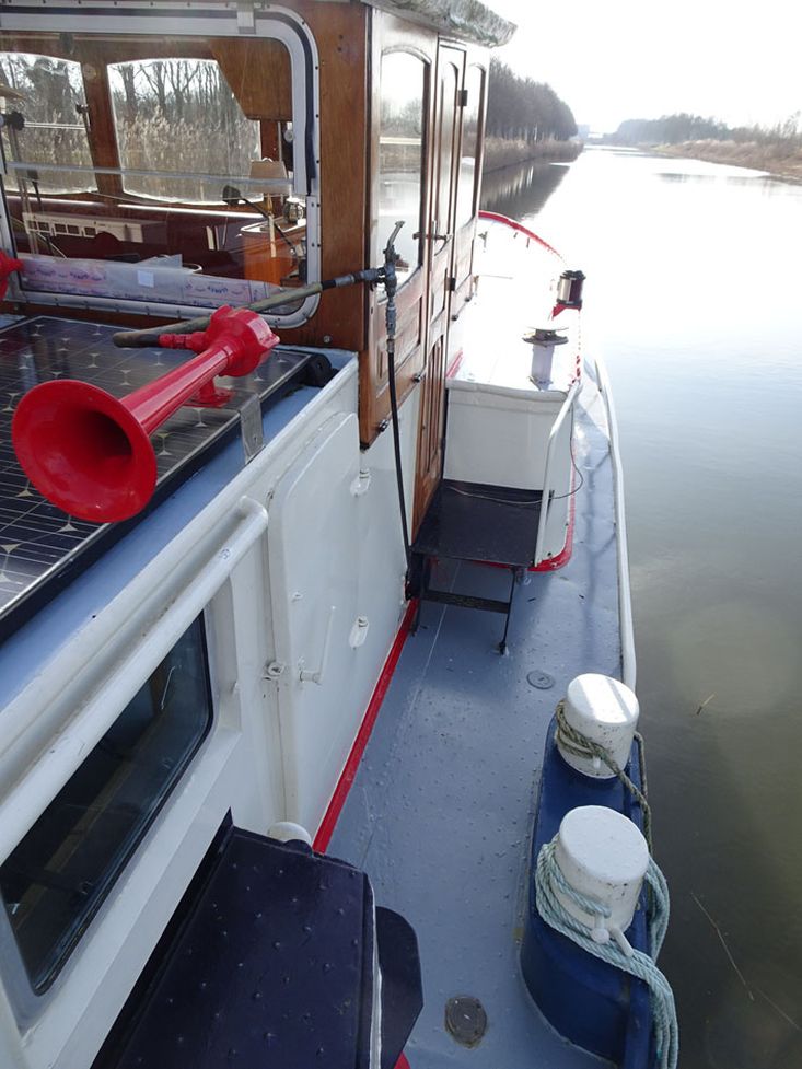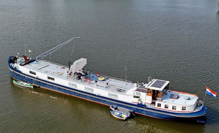 Cet ancien cargo fluvial a été entièrement transformé en péniche habitable/barge hollandaise vers 1999. Il est homologué pour les zones 3 et 4 de l'UE, le Rhin, ainsi que pour la zone 2 aux Pays-Bas. Lors de la transformation, le logement arrière d’origine a été en grande partie préservés. Par l’intermédiaire de la timonerie élégamment aménagée, il est directement relié à l’habitation située dans l’ancienne cale. La salle de bains, de dimensions généreuses, est équipée d’une cabine de douche, d’une baignoire et d’un double lavabo. Un WC séparé est également présent. Dans le couloir se trouve un escalier menant au pont supérieur. La cuisine ouverte est spacieuse et attenante au salon. Le navire dispose en outre de trois cabines. À l’avant se trouve un atelier facilement accessible, doté d’une grande écoutille de pont. Le navire offre un espace de vie exceptionnel ainsi qu’une vaste zone de navigation s’étendant jusqu’à la mer Noire. Plus près du domicile également, cette péniche d’habitation convient parfaitement, que ce soit en navigation ou en stationnement, par exemple via le Ships Carousel ou à un poste d’amarrage permanent. Il s’agit d’une péniche confortable, spacieuse et polyvalente, offrant de nombreuses possibilités d’utilisation.