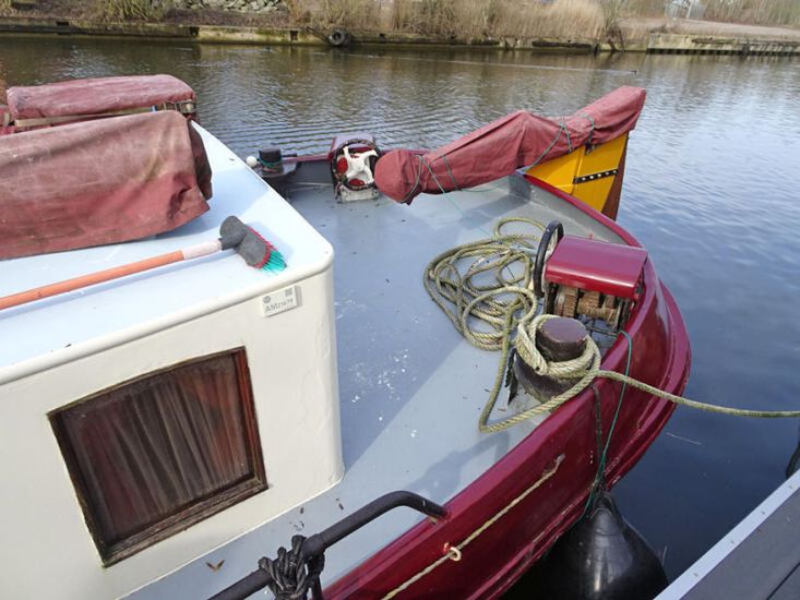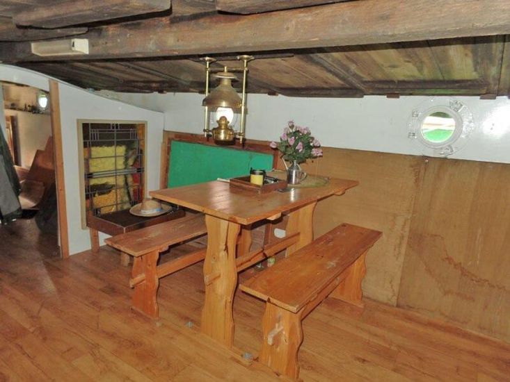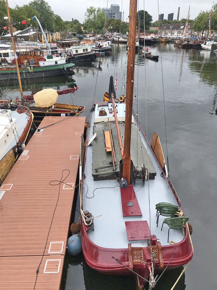 Cet ancien bateau de transport fluvial possède une riche histoire et a navigué jusqu’en 1938 principalement pour le transport de la tourbe des régions marécageuses vers les zones urbaines. Après sa période active de navigation commerciale, le bateau a été utilisé comme habitation flottante. Depuis 1980, il a été restauré avec soin et dans le respect de son passé, puis remis en navigation. L’intérieur est simple, chaleureux et fonctionnel, en harmonie avec le caractère du bateau. La pointe avant abrite deux couchettes. La cale a été aménagée en un espace de séjour convivial avec dinette, ainsi qu’un compartiment toilettes séparé. Depuis la cale, on accède à la cabine arrière où se trouvent la cambuse, un poêle et l’escalier menant au pont arrière. La pointe arrière se trouve une confortable couchette double. La hauteur sous barrots à bord est limitée. Cette tjalk à voile est bien entretenue, prête à naviguer et parfaitement adaptée à un usage de plaisance, à la participation à des événements nautiques ou comme élément représentatif du patrimoine maritime navigant pour la saison à venir.