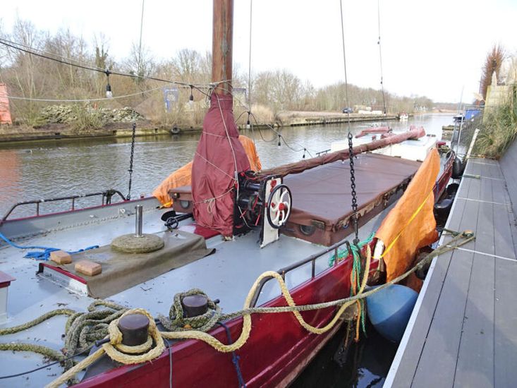 Dit voormalig binnenvaartvrachtschip kent een rijke historie en heeft tot 1938 voornamelijk met turf vanuit de veengebieden naar de stedelijke gebieden gevaren. Na deze actieve vrachtvaartperiode heeft het schip dienstgedaan als woonark. Vanaf 1980 is ze met zorg en respect voor haar verleden in oude luister hersteld en opnieuw in de vaart gebracht. Het interieur is eenvoudig, sfeervol en functioneel ingericht, passend bij het karakter van het schip. In het vooronder bevinden zich twee slaapplaatsen. In het ruim is een gezellige zitruimte met dinette gerealiseerd, evenals een separate toiletruimte. Vanuit het ruim is er toegang tot de achterroef, waar het kombuis, een kachel en de trap naar het achterdek zijn gesitueerd. In het achteronder bevindt zich een comfortabele tweepersoons kooi. De stahoogte is in het schip beperkt. Deze Zeiltjalk verkeert in een nette staat van onderhoud. Ze is vaarklaar en uitstekend geschikt voor recreatief gebruik, deelname aan evenementen of als karakteristiek varend erfgoed voor het komende vaarseizoen.