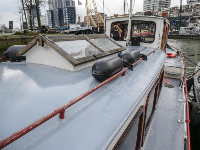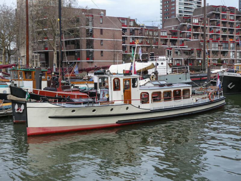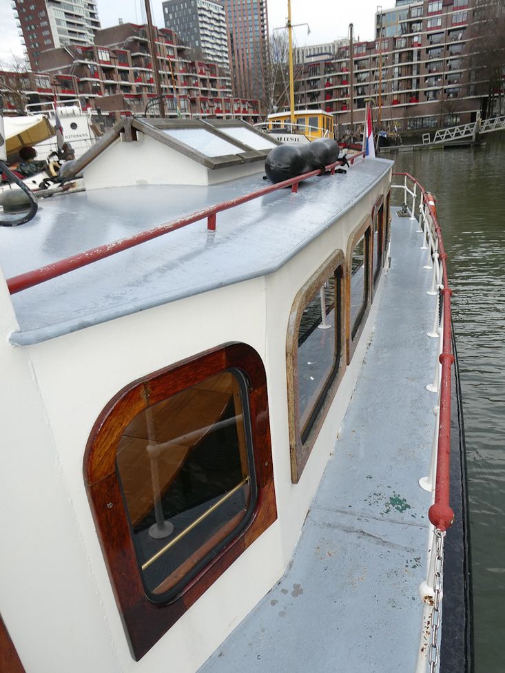 Former executive vessel, commissioned by the Rotterdamsche Lloyd and built at the renowned Amsterdamsche Shipyard G. de Vries Lentsch Jr. under the name ‘Batavia’. She subsequently served as ‘De Maze’ for the Port of Rotterdam and the Rotterdam drinking water utility. Later, the vessel was converted into a salon boat, suitable for cruising with up to 12 guests. The open cockpit and the salon provide ample space for accommodating a group. In front of the wheelhouse is a stairway leading to the toilet and the fore cabin, which currently is in use as storage but can relatively easily be converted into sleeping accommodation. This is not an ordinary tour boat. The vessel is particularly well suited for customized cruises, such as private cruises, corporate receptions, cultural programs and themed cruises through both the historic and modern harbor areas of Rotterdam. She is currently being used in this capacity. The seller has a permit to cruise with a maximum of 12 guests and to moor in specific areas of the Port of Rotterdam, a valuable and not-to-be-given privilege.