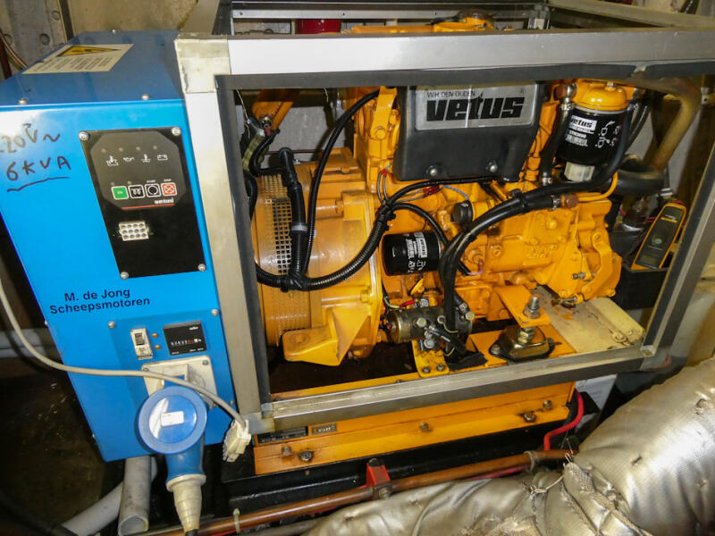 Generator: Vetus/Mitsubishi GLS6SIK fluisterdiesel, 6 kVA, 1500 RPM, 2050 draaiuren (ca.)