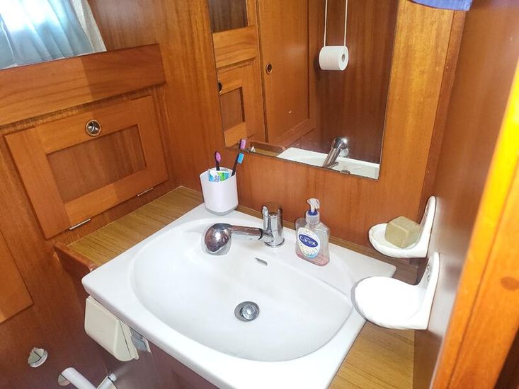 The warm and traditional mahogany joinery below decks creates a classic, sea-kindly atmosphere, comfortably accommodating up to seven crew across three cabins. The accommodation is enhanced by practical liveaboard features including a new cooker (2019), a diesel cabin heating system, and a recently replaced pressurised water system.
