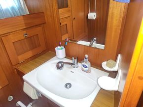 Her sailing systems are equally impressive, featuring a modern sail plan from Crusader (mainsail 2022, genoa 2020) and a Selden bowsprit for effortless gennaker cruising.