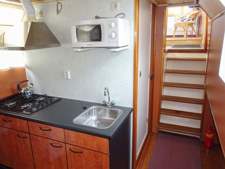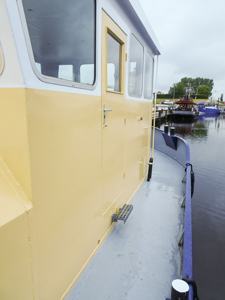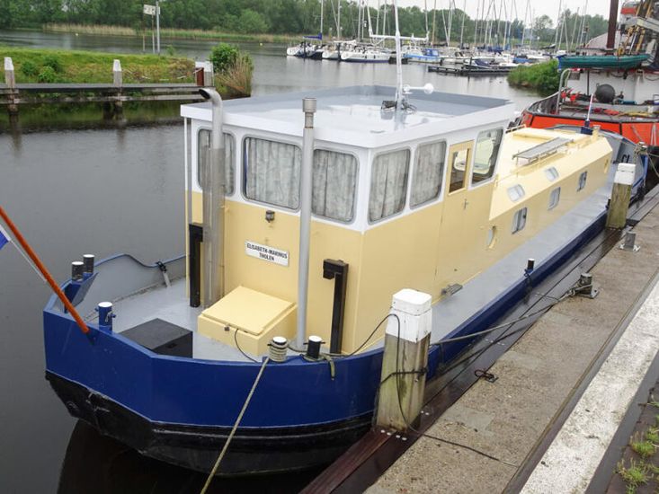 Ancienne péniche fluviale qui, après avoir été utilisée entre autres pour le transport de cacao,, a été convertie en bateau de travail puis transformée en bateau de plaisance/habitation. Le navire est bien entretenu et dispose d'une disposition pratique, ce qui le rend idéal pour des croisières confortables ou des séjours plus longs à bord. La timonerie offre une excellente visibilité panoramique et dispose d'un coin salon confortable. La salle de bain est équipée d'un WC électrique et d'une douche. Ensuite se trouve la cuisine, suivie du salon. À l'avant, il y a deux cabines, chacune avec un lit simple. Il y a également un rangement et un atelier à l'avant, accessibles de l'extérieur. La salle des machines, équipée d'un moteur de 120 chevaux, est située sous la timonerie. Le mât de la lanterne est préparé pour l'abaissement électrique mais doit encore être connecté. La peinture est en bon état. Le pont est repeint chaque année et la superstructure a été repeinte pour la dernière fois en 2023. Ce bateau est un excellent choix pour les amateurs de sports nautiques recherchant un bateau pratique pour les week-ends, les vacances ou des séjours les longs à bord.