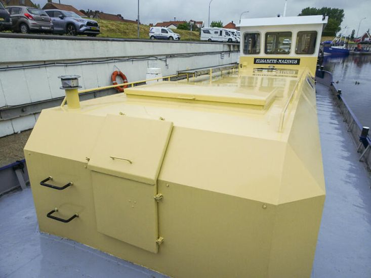 Former inland deckbarge that, after being used for among other things cocoa transport, was converted into a work vessel and subsequently converted into a recreational vessel / live aboard. The vessel is well-maintained and has a practical layout, making her ideal for comfortable cruises or longer stays on board. The wheelhouse offers excellent all-around visibility and features a comfortable seating area. The bathroom is equipped with an electric toilet and a shower. Then there is the galley, followed by the salon. In the front, there are two cabins, each with a 1-persons bed. There is also a storage and workshop in the bow that is accessible from the outside. The engine room, with a 120 hp engine, is located under the wheelhouse. The lantern mast is prepared for electric lowering but still needs to be connected. The paintwork is in good condition. The deck is done yearly and the superstructure was last painted in 2023. This boat is an excellent choice for water sports enthusiasts looking for a practical boat for the weekends, holidays, and/or long stays on board.