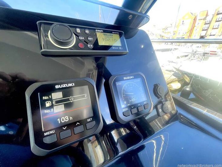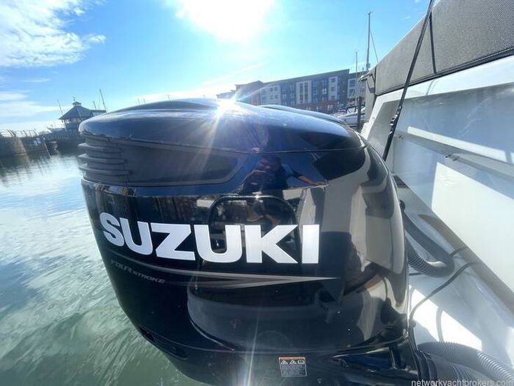 We're pleased to present this well-equipped Jeanneau Merry Fisher 1095, designed for versatile cruising with family and friends. Powered by twin Suzuki DF300 300HP outboards, she offers impressive performance with a max speed of 37 knots and a comfortable cruising speed of 25 knots.