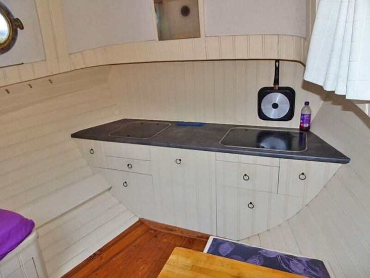 Ce remorqueur de plaisance de caractère, de type « Amsterdammer », est une unité unique sur l’eau, offrant d’excellentes qualités nautiques et un aménagement intérieur simple et fonctionnel. Le vaste logement avant est équipé d’une cuisine (cambuse) et de deux couchettes simples. La timonerie est rabattable, ce qui permet une hauteur de passage d’environ 1,90 mètre et donne accès à une vaste zone de navigation. En avant de la timonerie se trouve la spacieuse salle des machines, abritant un superbe moteur Industrie à régime lent, entièrement révisé en 2010 pour un montant d’environ 39.000 €. Un espace de rangement supplémentaire est disponible sous le pont arrière. À notre avis, il s’agit d’un bateau attrayant et bien entretenu, idéal pour les passionnés et parfaitement adapté à la participation à des événements nautiques et manifestations maritimes.
