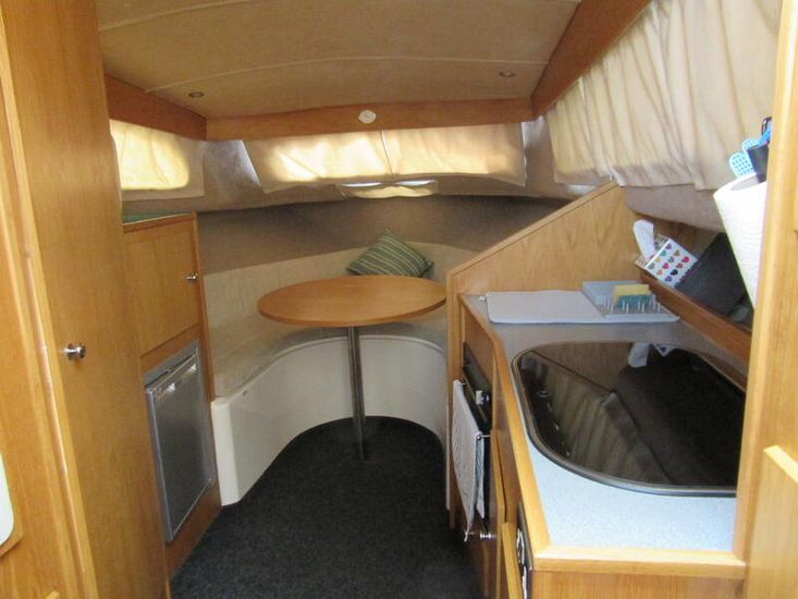 A lovely family cruiser, these smart and affordable river cruisers are well equipped and can be specified to your choice with a range of options, colours and fabrics, They are fitted with a quiet and reliable 4 stroke outboard with a 5 year warranty and the 255 benefits from bathing platforms and a transom door for easy access. We have a brand new example available for Spring 2026 delivery finished in a fetching pale grey hull with Titanium canopy, bowthruster, heataing, shorepower and much much more. Please call for more information.